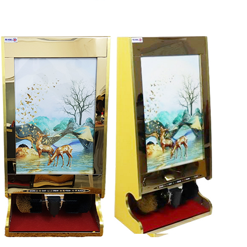 Màu sắc vàng gold tranh sơn thủy kết hợp vàng hồng tráng gương mặt trước với thân máy inox chống rỉ bề mặt chất liệu thép vàng hồng mặt trước trang trí màu đen bạc sang trọng